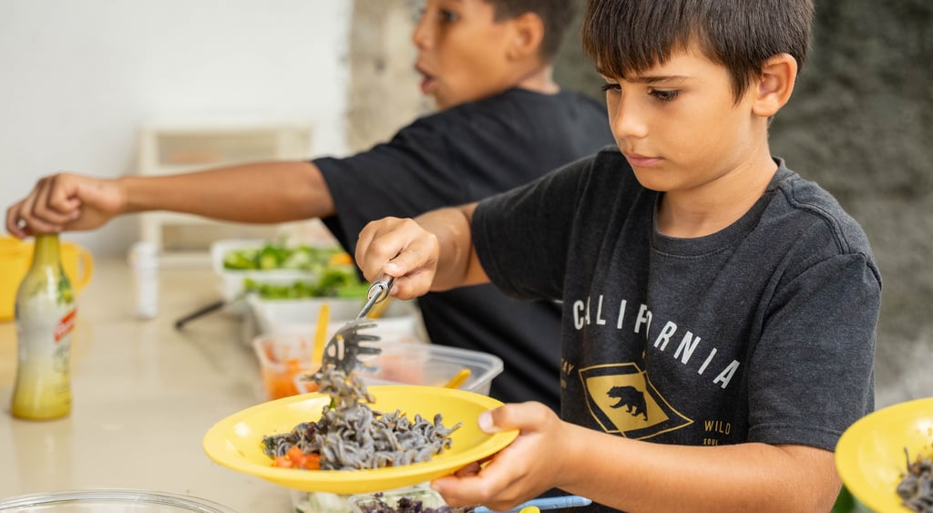 Quando chegou na ONG, era bem seletivo com a comida, mas hoje já se aventura a colocar legumes no prato e curte bastante as aulas de culinária. Thomas tem um jeitinho charmoso, sensível e cuidadoso, principalmente com os menores. Ele cresce a cada dia, e acompanhar esse processo é um presente.