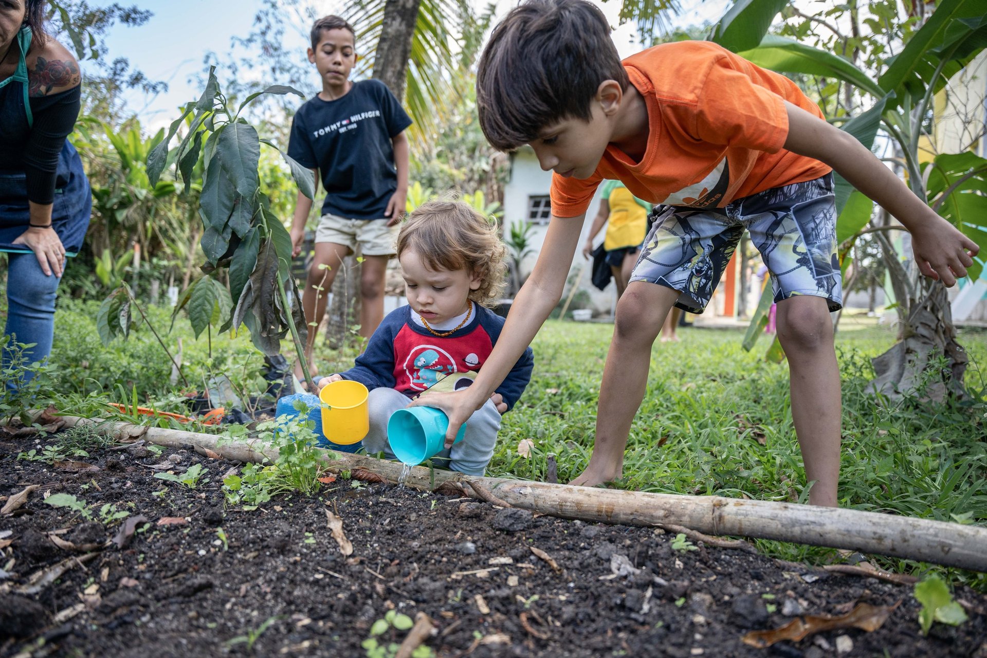 Aulas de reforço escolar, inglês, yoga, muay thai, culinária, artes, educação ambiental, compostagem e aula das emoções;